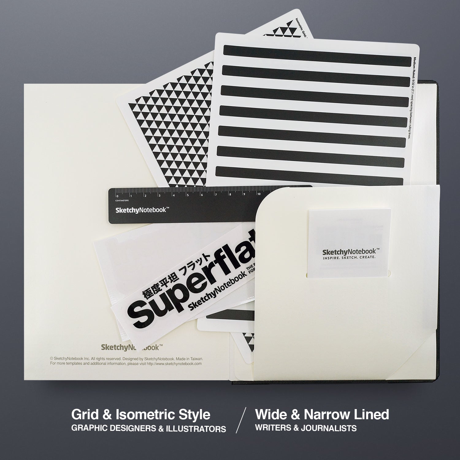 For those who want the classic SketchyNotebook in A5 size, this is for you! You’ll get one SketchyNotebook which comes with the Basic Template Pack (Grid and Lined).
